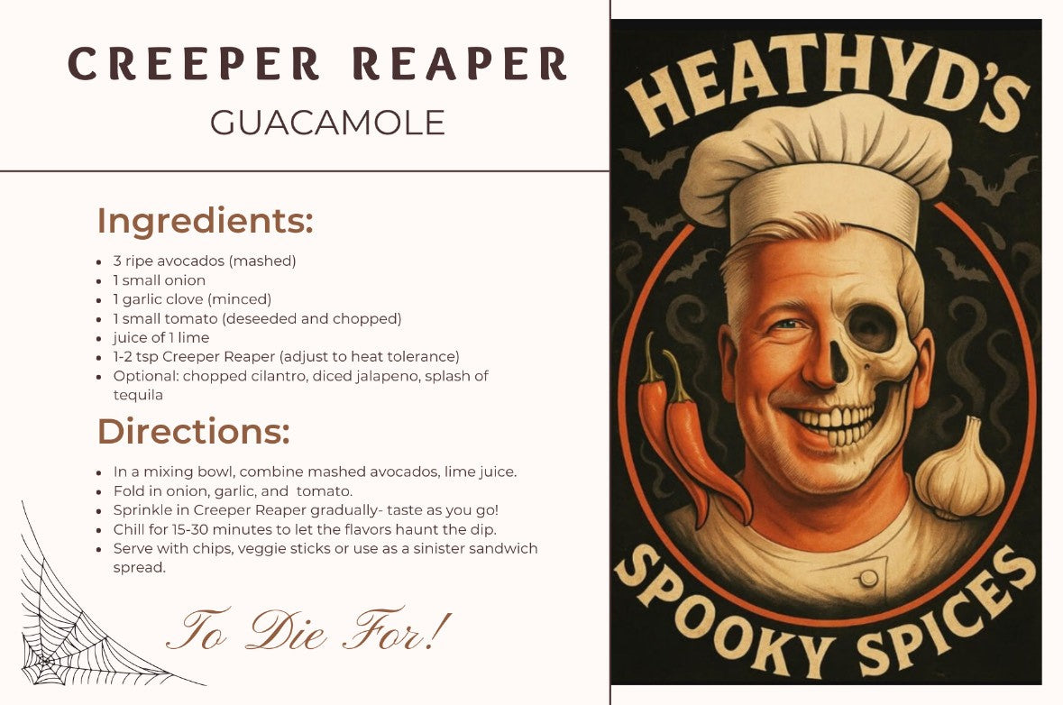CREEPER REAPER strikes with zingy heat and a sharp bite of pepper, garlic, and onion—flavor so bold, it might just chase you into the shadows.